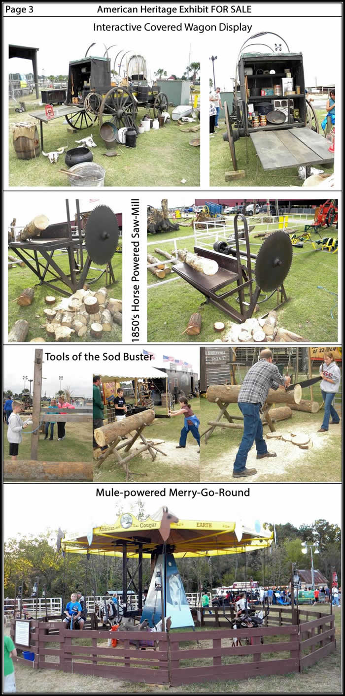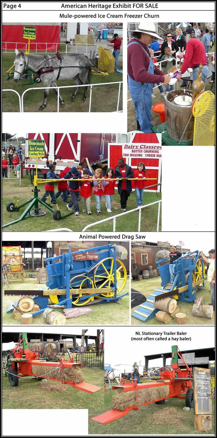 SPECIAL NOTE: It is important to all of us who knew and loved Michael Sandlofer and were so positively touched by his life, to share with whomever ends up purchasing this exhibit the following: What goes with every piece is the dream of Michael Sandlofer to teach and learn from the past. His passion for preservation, care of animals, conservation, agricultural education of the youth and patriotism to his country were unparalleled. I have been in the fair and people business for over 30 years and Michael, in the 10 years that I knew him, taught me humility, kindness from a position of strength and to never be afraid of anything. He was a man of faith who cared deeply about the preservation of our country our land and our animals. We lost Michael Feb 8, 2016. But he was a fighter and that was evident to the end. There will never be any one else like him. But if his collection of historic equipment is used properly, his dream will be accomplished as young people learn our American Heritage. ~ David Musselman