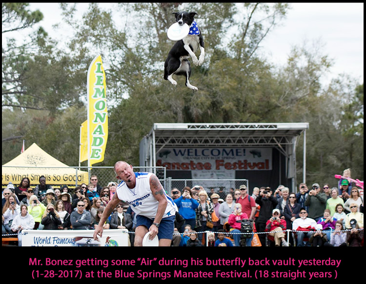 Since we get asked that question repeatedly by folks that have never seen our show; we decided to put in writing the qualifications of our team that differentiates us from the other 6 Frisbee/Disc Dog shows that are similar to ours.