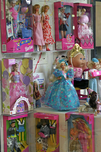From Mc Donalds and Sea's Candy, to the 1991 Costume ball mask shop, the above display contains many shopping scenes. |