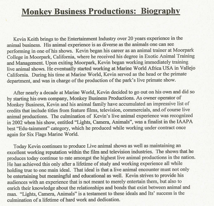 Click for Monkey Business Production Biography