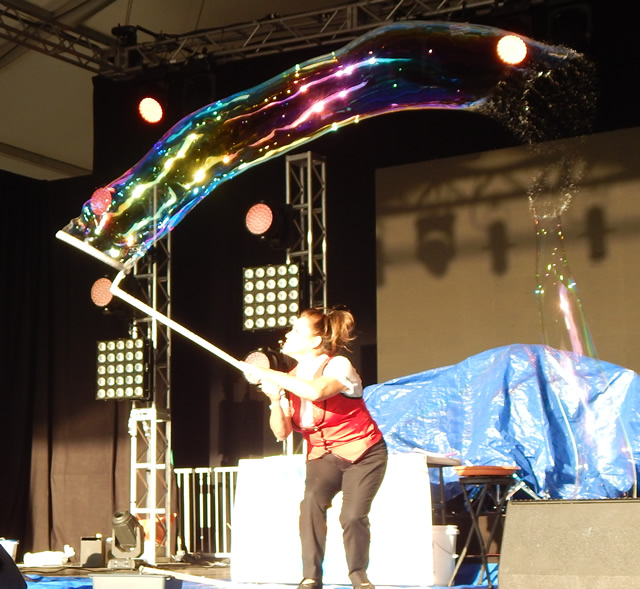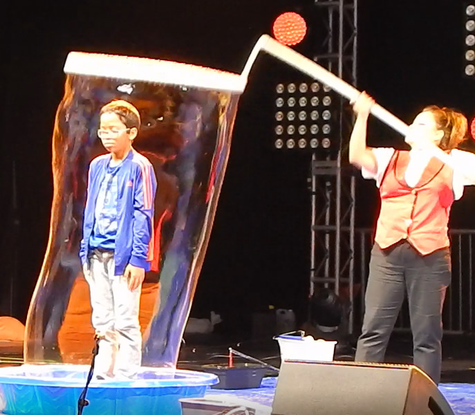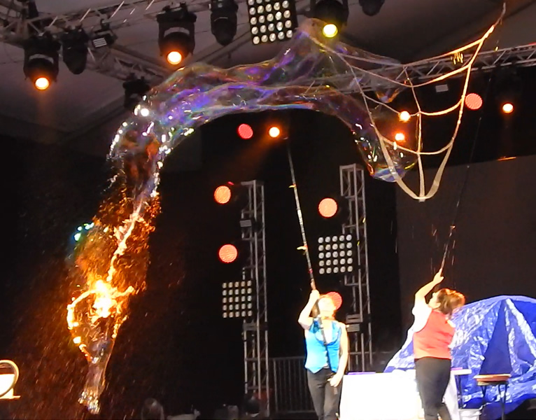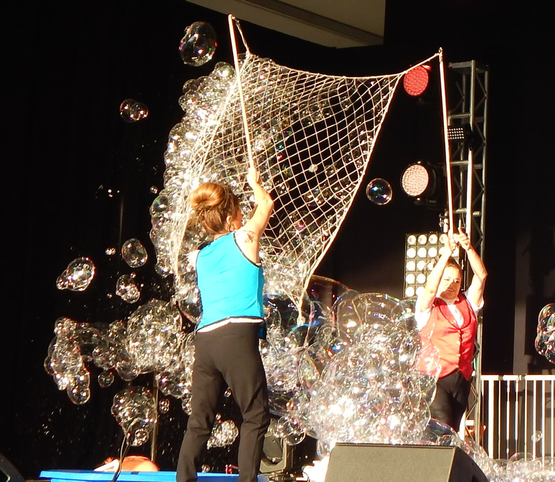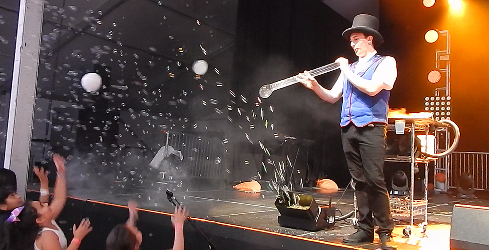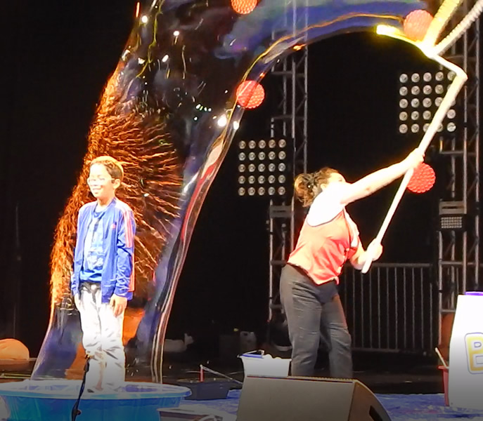 Your audience will enjoy watching an array of giant bubbles, smoke bubbles, putting kids in bubbles and multiple bubbles of all sorts.