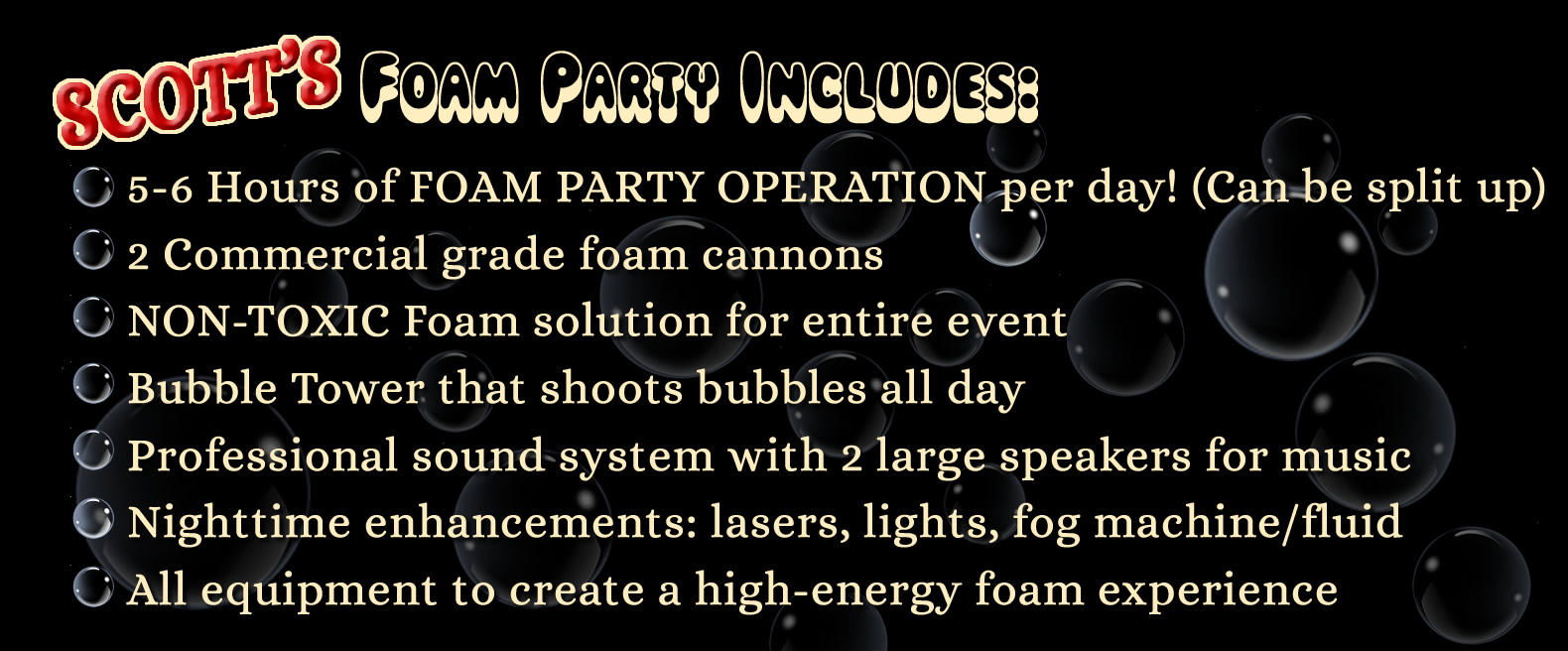 foam parties one of the most memorable attractions at any Fair, Festival or Park!