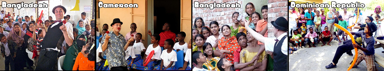 Being unspoken, mime and silent performing easily transcend language barriers, making it ideal entertainment for audiences worldwide. Doors to friendship are opened easily through the universal appeal of Chris’s art which has been seen in 18 countries: Bangladesh, Benin, Cameroon, Canada, China, Curaçao, the Dominican Republic, El Salvador, France, Guatemala, Haiti, India, Japan, Morocco, Puerto Rico, Spain, Switzerland and the UK. And all over the USA. Chris is very grateful to have worked with Project Troubador, Magicians Without Borders, and Clowns Without Borders, and many other organizations in the countries visited.
