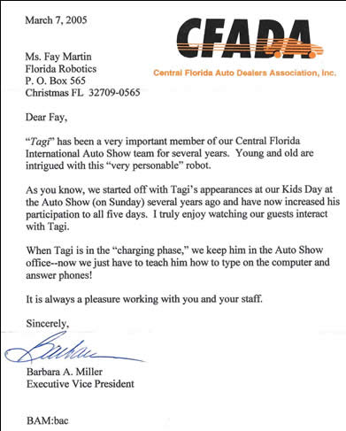 We started off with Tagi's appearances at our Kids Day at the Auto Show several years ago,and now have increased his participation to all five days. I truly enjoy watching our guests interact with Tagi! It is always a pleasure working with you and your staff.