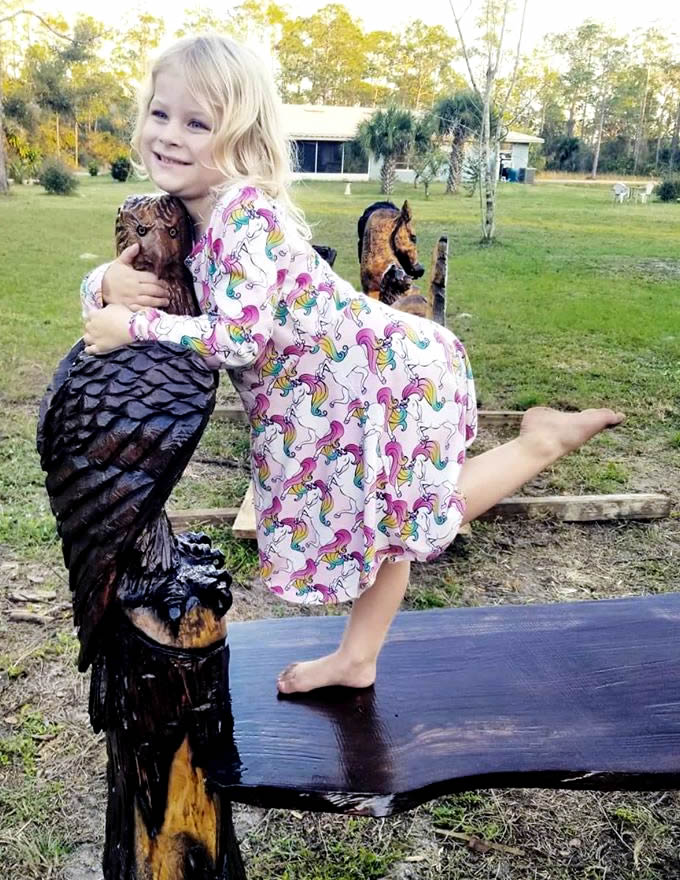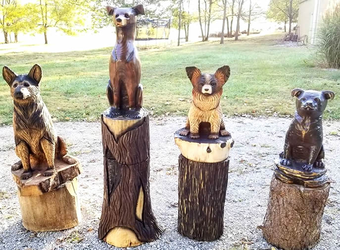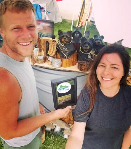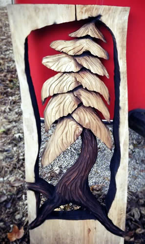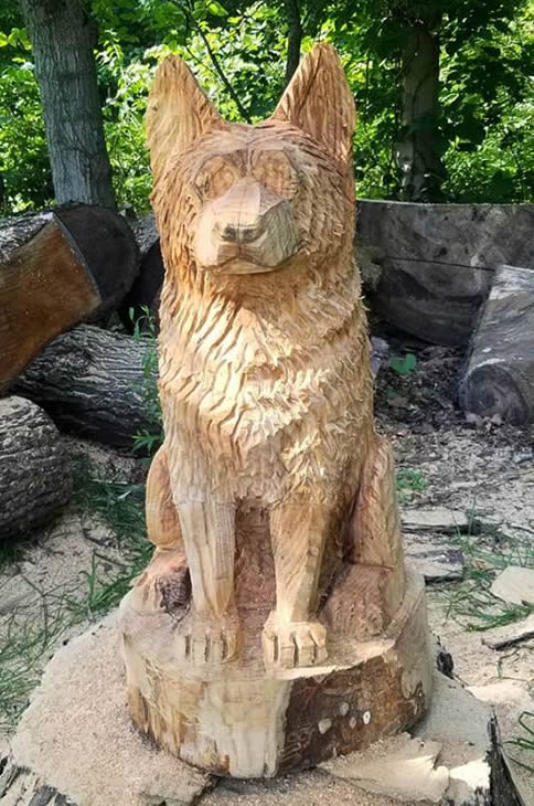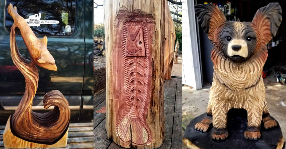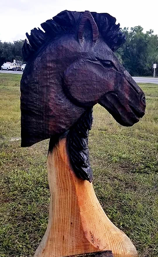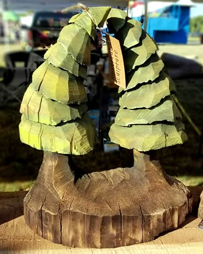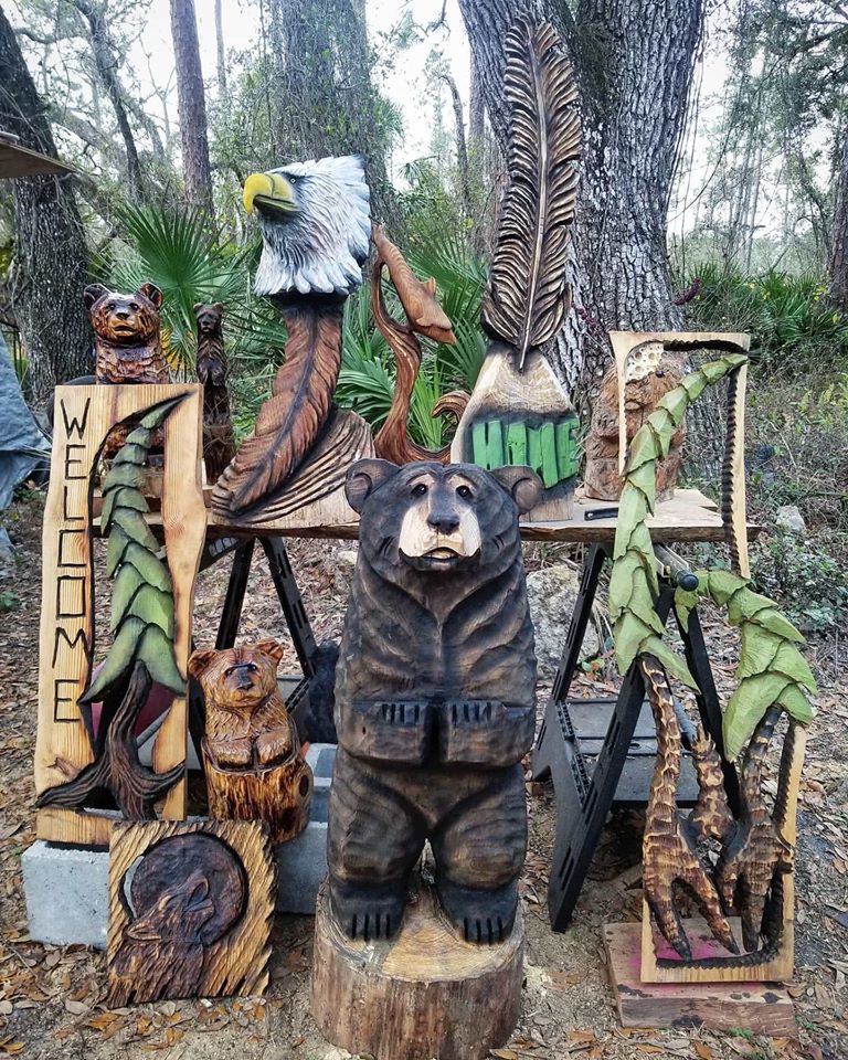 With 3 to 4, 1- hour show's per day, Nick offers Professional Chainsaw Carving Demonstrations. This includes: Speed carving demonstrations creating wood sculptures including; birds, mammals, fish, abstract, local/state specific animals (bears, eagles, owls, sea life etc), Signs, wall hanging slabs, structural/architectural type of pieces, like farm equipment, barns, cabins. NOTE: Detail and finishing work will be done between shows.