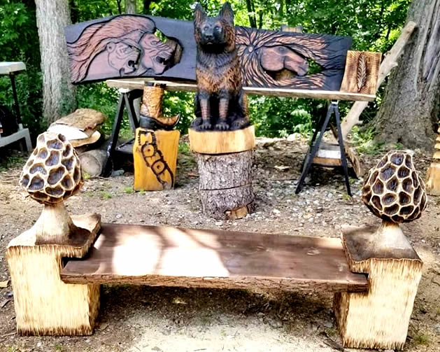Professional Chainsaw Carving Demonstrations including Speed carving demonstrations creating wood sculptures, including birds, mammals, fish, abstract, local/state specific animals (bears, eagles, owls, sea life etc.). Signs, wall hanging slabs, structural and architectural type of pieces, like farm equipment, barns, cabins. Detail and finishing work will be done between shows. (we can do dinosaurs, robots or other themes as needed).