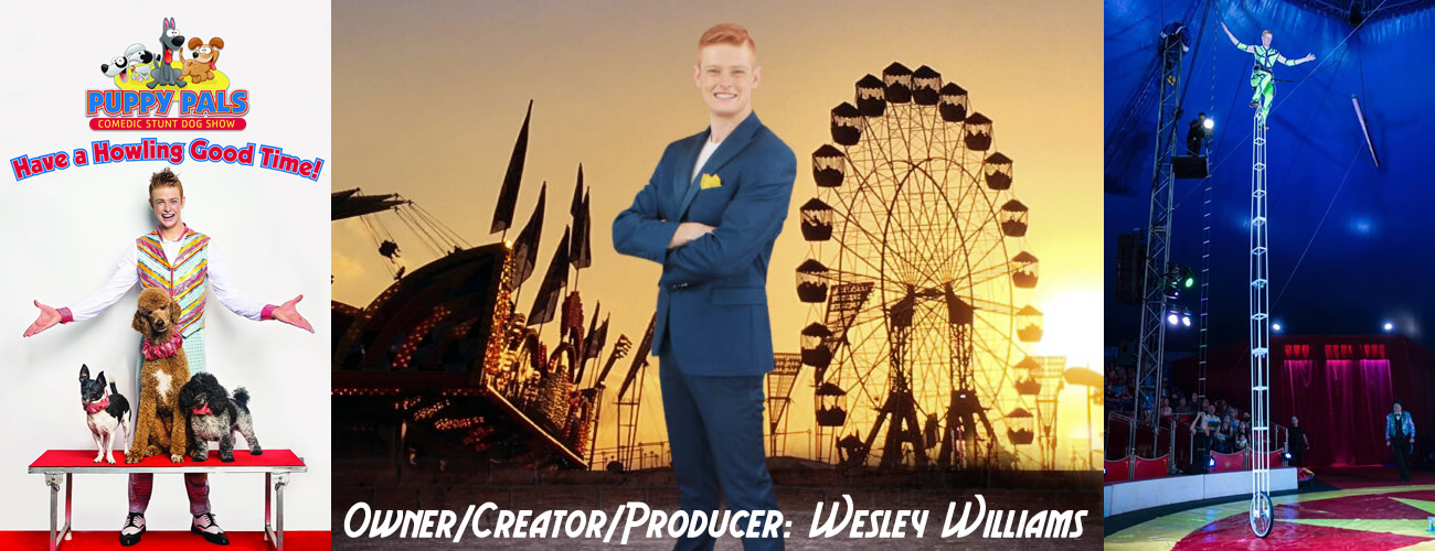 The WOW Water Circus visionary and creator, Wesley Williams, brings a fresh and innovative approach into the world of show business. Known for his work on America’s Got Talent, European productions, and first class shows around the world. Currently producing two of the fair/festival market’s most in demand shows, Puppy Pals Comedic Stunt Dog Show & Wesley Williams LIVE, The One Wheel Wonder Show.